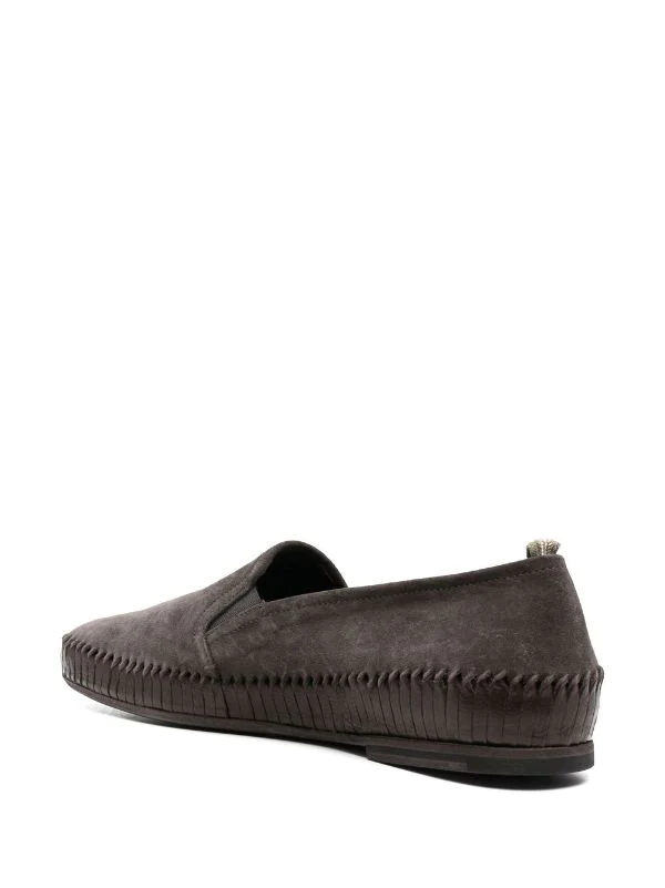 Détail torsadé, bout rond, empiècements élastiqués sur les côtés, languette d’enfilage au talon, semelle extérieure en cuir. Couleur : marron.