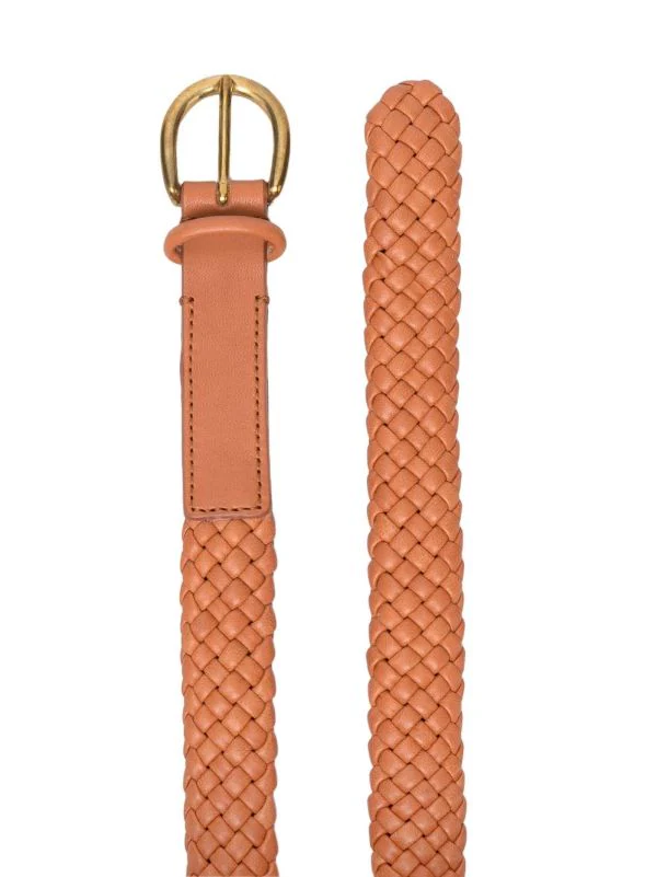 Design tissé, fermeture à boucle dorée, taille ajustable. Matière : cuir.