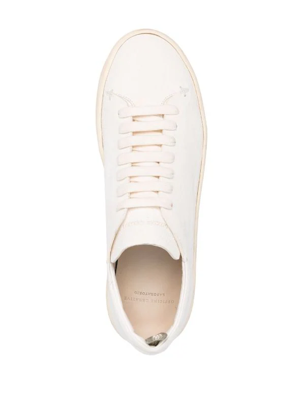 Design ton sur ton, languette d’enfilage au talon, bout en amande, fermeture à lacer sur le devant, semelle plate en caoutchouc. Couleur : blanc. Matière : cuir.