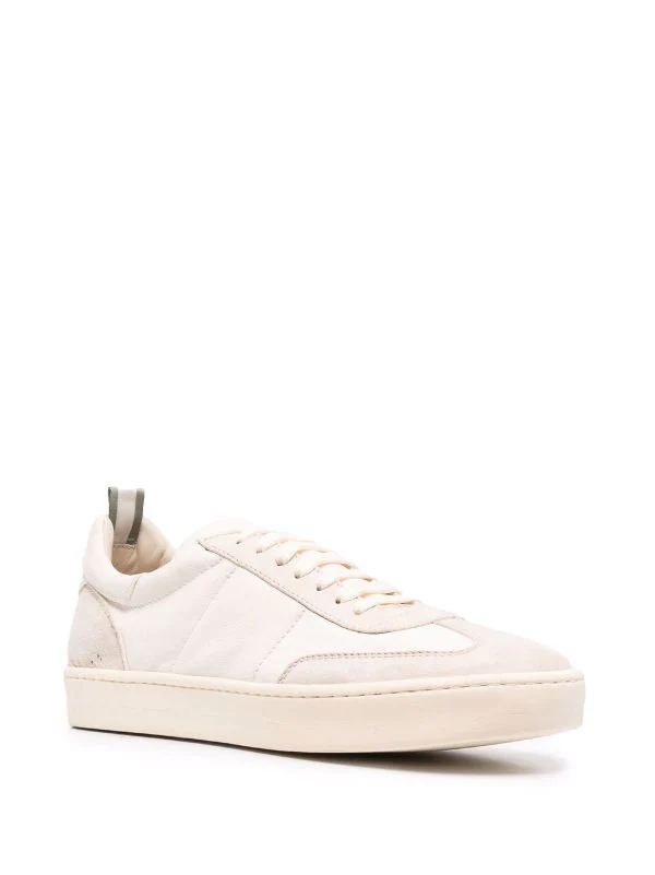 Languette à logo brodé, bout rond, fermeture à lacer sur le devant, semelle plate. Couleur : blanc.