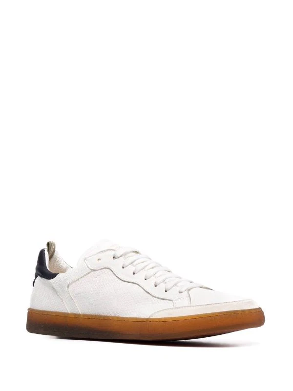 Fermeture à lacer sur le devant, languette à patch logo, contrefort à logo, semelle plate en caoutchouc. Couleur : blanc. Matière : cuir de veau.