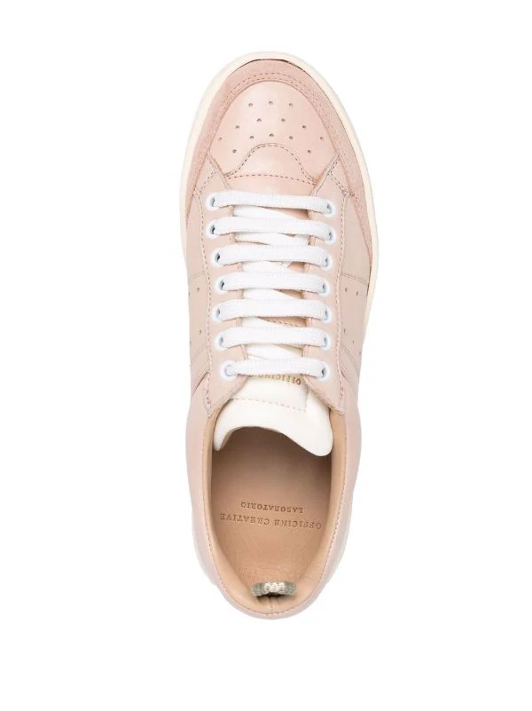 Design ton sur ton, détails de perforations, languette d’enfilage au talon, bout en amande, fermeture à lacer sur le devant, semelle plate en caoutchouc. Couleur : rose. Matière : cuir.