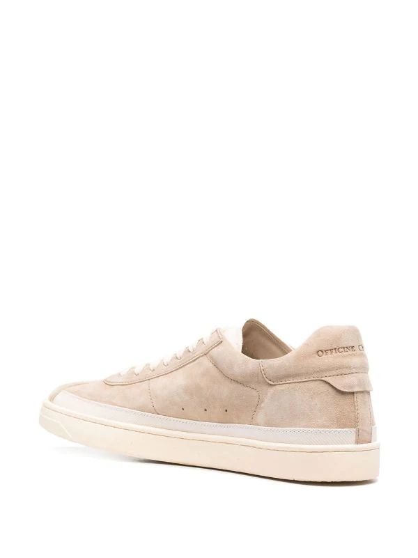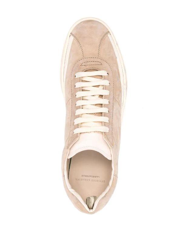 Écru, veau velours, bout rond, fermeture à lacer sur le devant, semelle plate en caoutchouc.