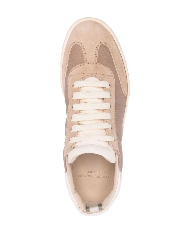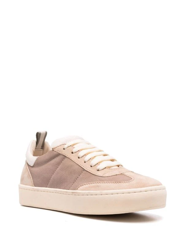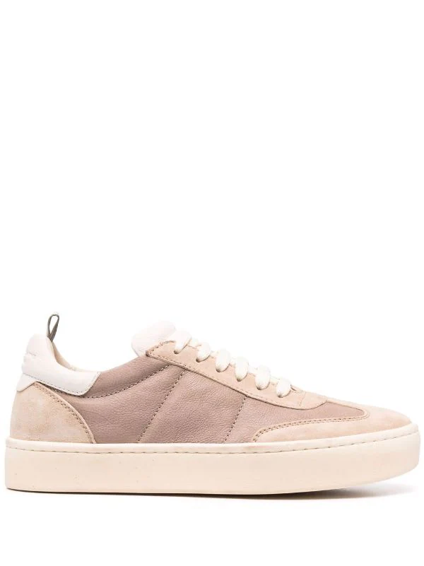 Design à empiècements, bout rond, fermeture à lacer sur le devant, semelle intérieure à logo, semelle plate en caoutchouc.