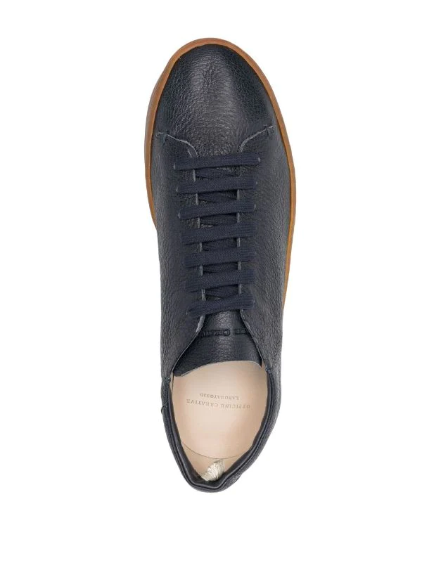 Bleu nuit, logo embossé sur le devant, bout rond, fermeture à lacer sur le devant, semelle intérieure à logo, semelle plate en caoutchouc.