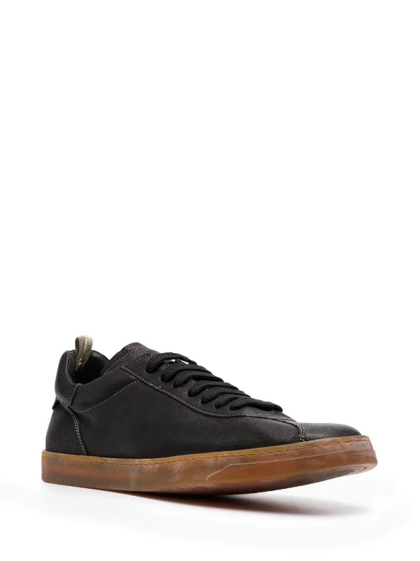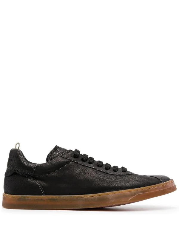 Noir, cuir de veau, bout rond, fermeture à lacer sur le devant, languette d’enfilage au talon, semelle plate en caoutchouc.