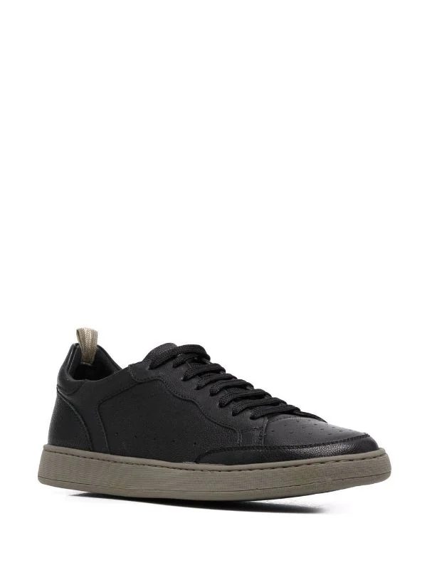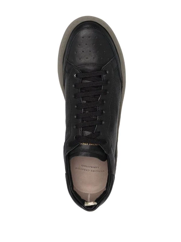 Fermeture à lacer sur le devant, bout rond, semelle plate en caoutchouc. Matière : cuir.