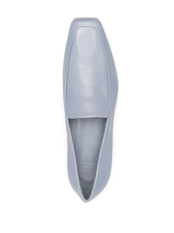 Bout carré, petit talon, semelle intérieure à logo, design à enfiler.