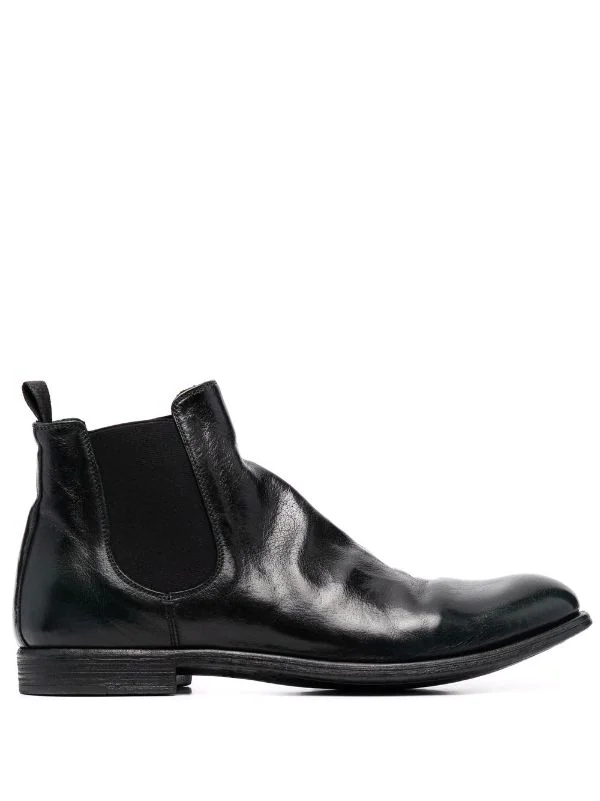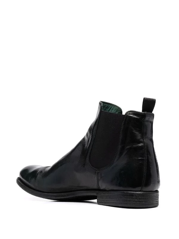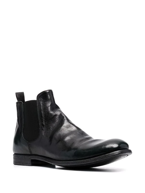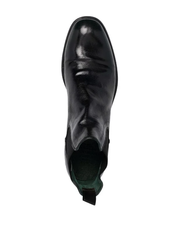 Languette d’enfilage au talon, bout en amande, hauteur cheville, semelle plate. Couleur : noir.