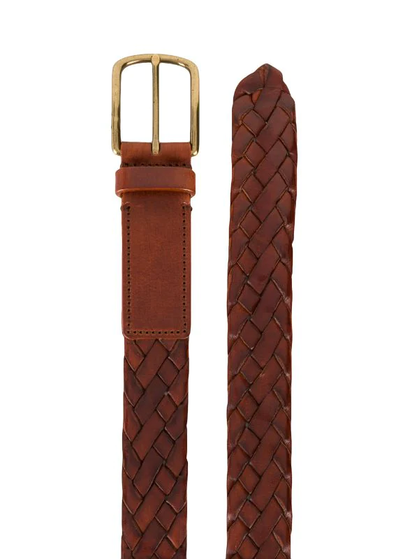 Design tissé, fermeture à boucle, taille ajustable. Couleur : marron. Matière : Cuir de veau.