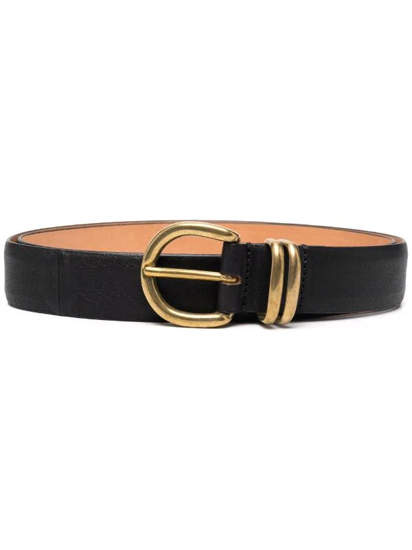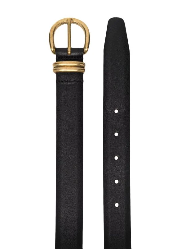 Trous percés, fermeture à boucle dorée, taille ajustable. Couleur : noir. Matière : cuir.