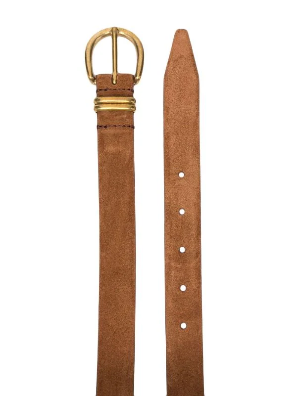 Fermeture à boucle dorée, détails de perforation, taille ajustable. Couleur : marron. Matière : cuir.