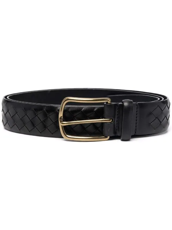 Design tissé, fermeture à boucle dorée, taille ajustable. Couleur : noir. Matière : cuir.