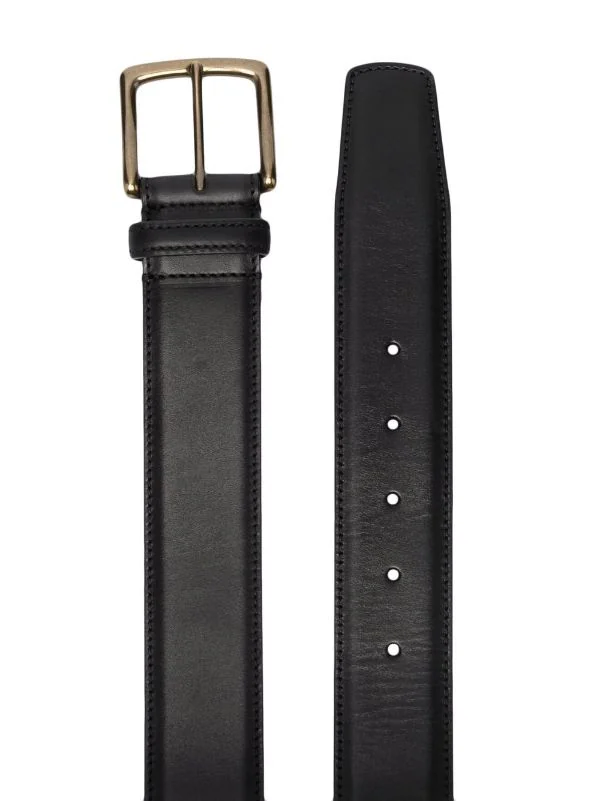 Fermeture à boucle, trous percés, extrémités carrées. Couleur : noir. Matière : cuir.
