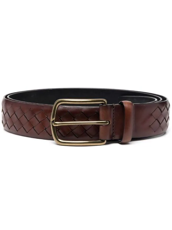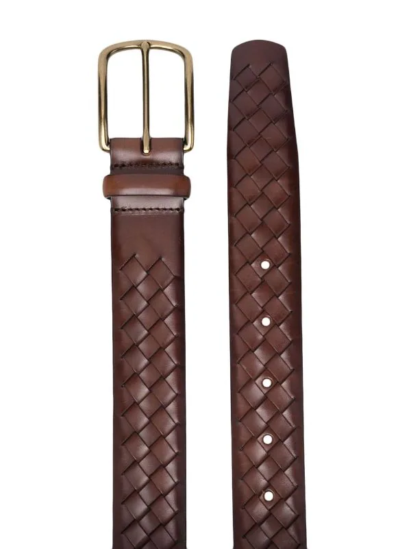 Finitions tressées, fermeture à boucle, trous percés, extrémités carrées. Couleur : marron. Matière : cuir.