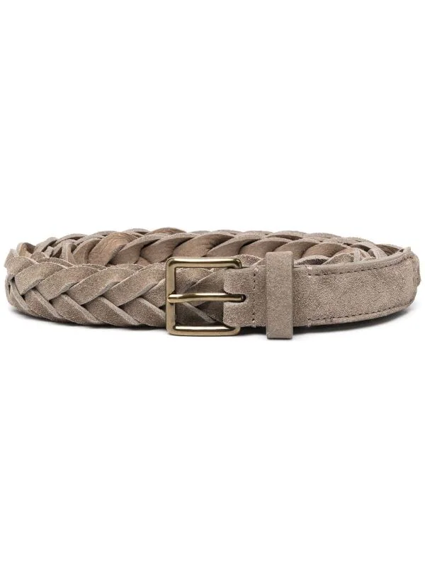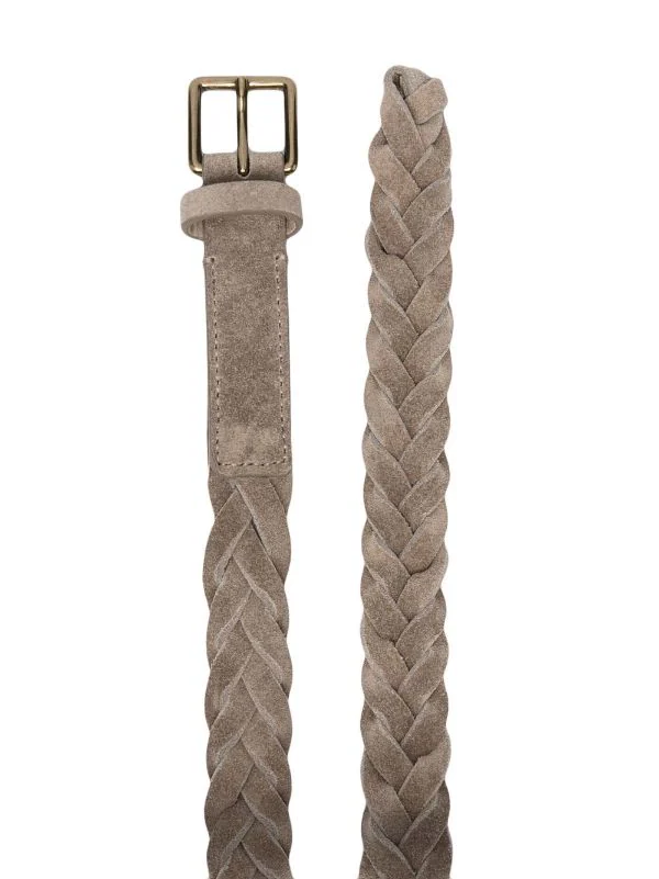 Finitions tressées, fermeture à boucle, extrémités incurvées. Matière : cuir.