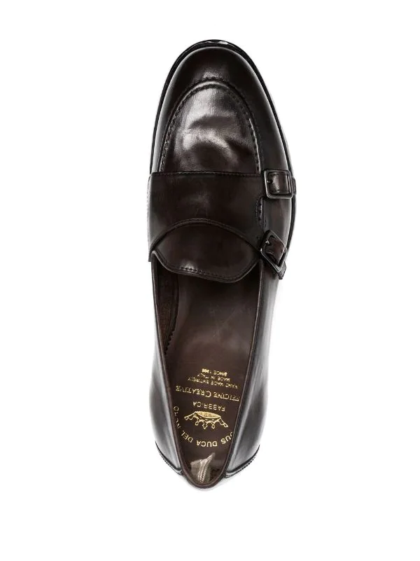 Bout en amande, fermeture à double boucles, semelle intérieure à logo, semelle plate en cuir.