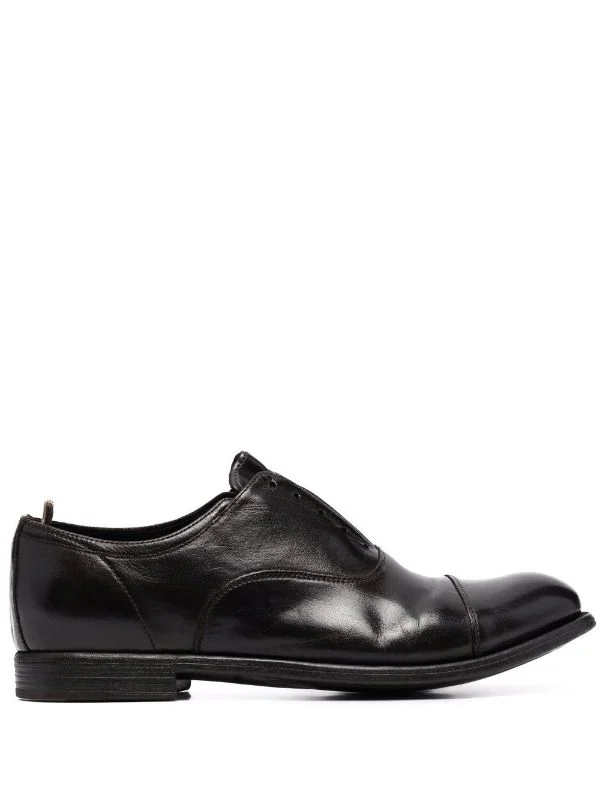 Bout rond, design sans lacets, design à enfiler, semelle plate. Couleur : marron.