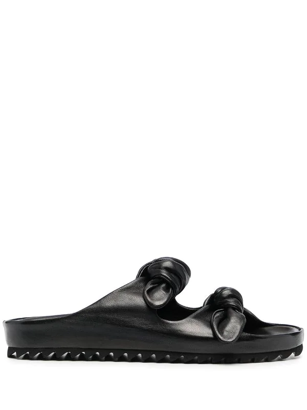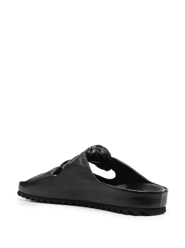 Bout ouvert, design à enfiler, semelle intérieure à logo, semelle en caoutchouc. Couleur : noir. Matière : cuir de veau.