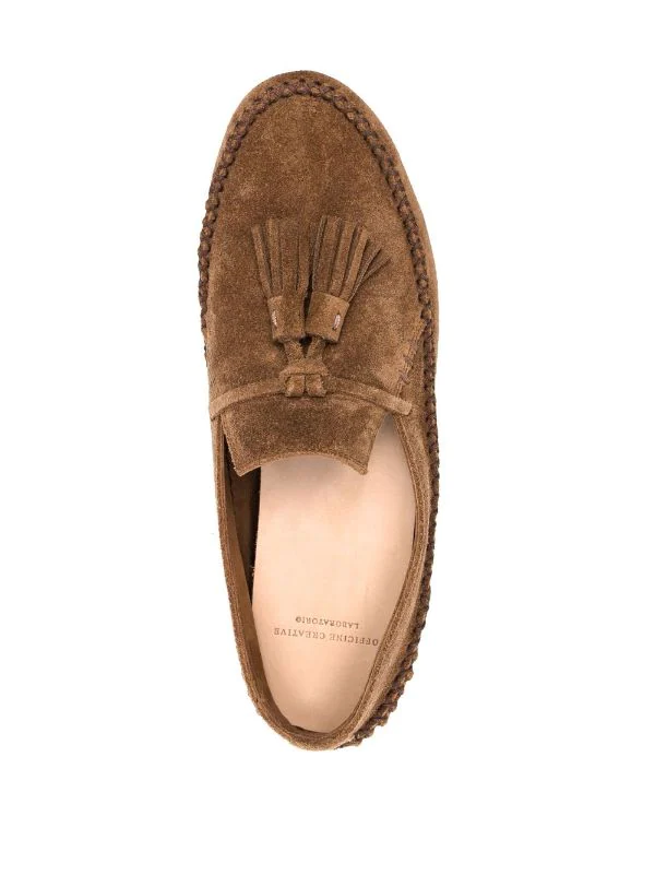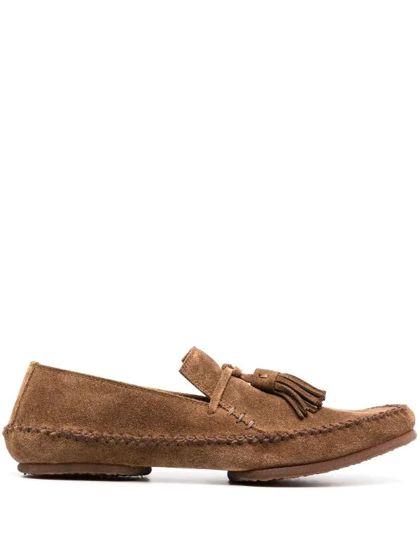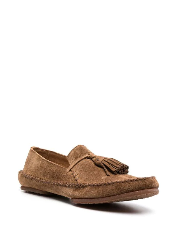 Doublure en cuir, bout en amande, détail de pompon, design à enfiler, semelle intérieure à logo, semelle plate en caoutchouc.