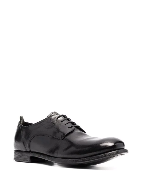 Fermeture à lacer sur le devant, bout rond, semelle plate. Couleur : noir.