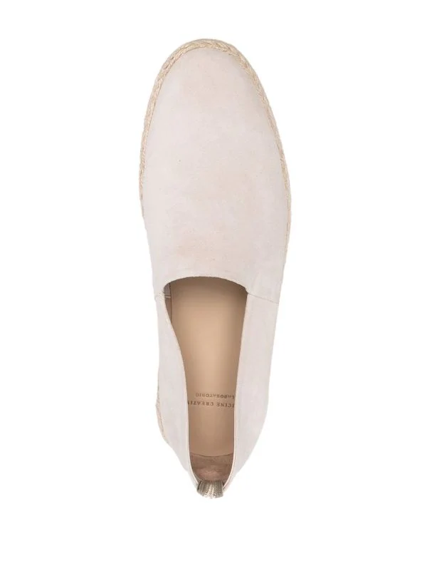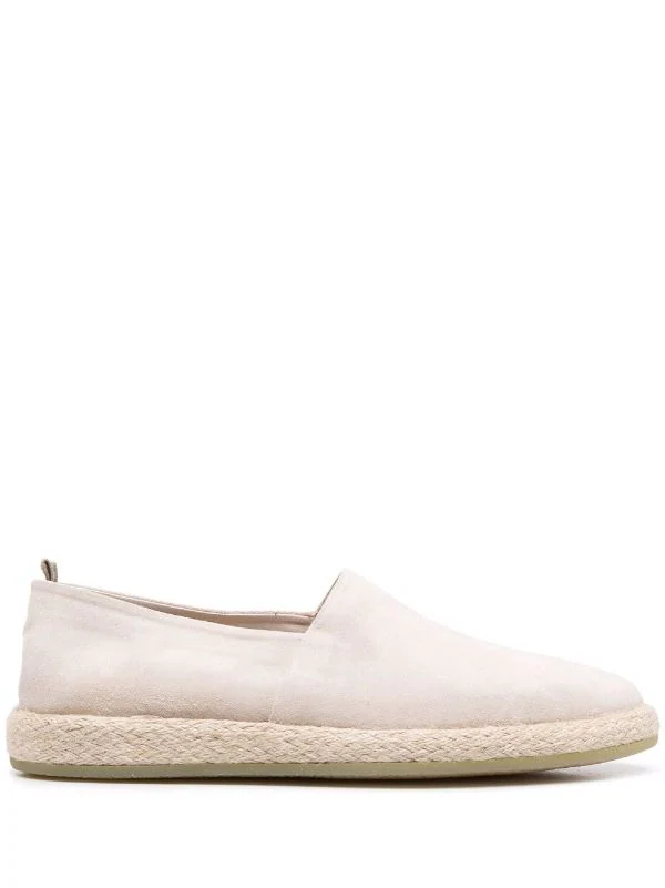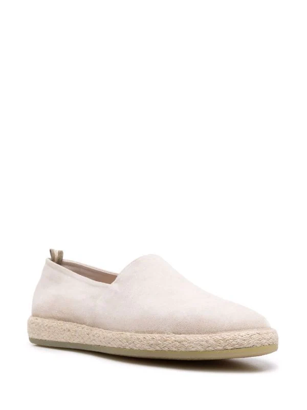 Doublure en cuir, bout en amande, design à enfiler, semelle intérieure à logo, semelle en raphia tressé, semelle plate en caoutchouc.