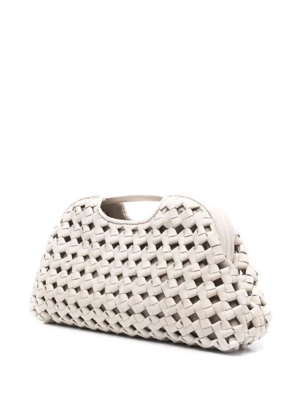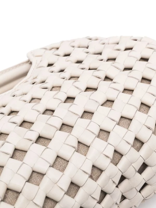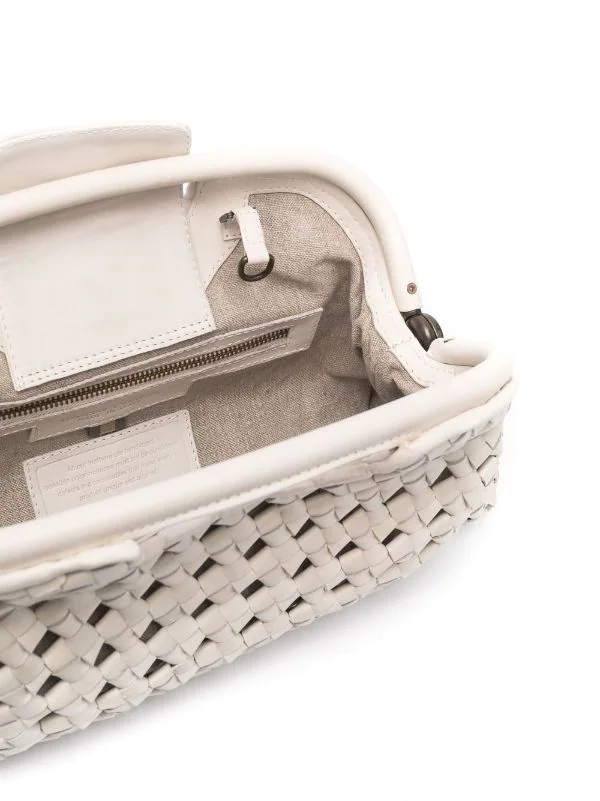 Blanc cassé, cuir, design tissé, anses arrondies, bride porté épaule détachable et ajustable, fermoir à cliquet, poche intérieure zippée.