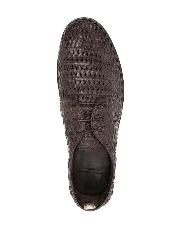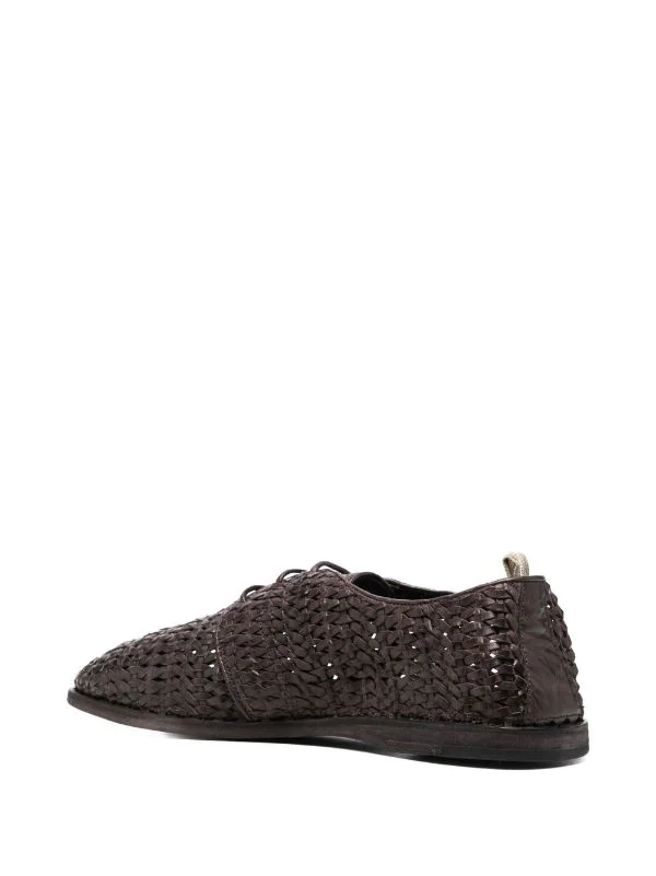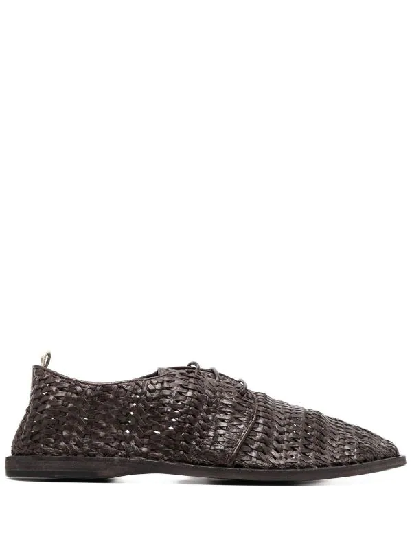 Café, design tissé, bout rond, fermeture à lacer sur le devant, semelle intérieure à logo, semelle plate.