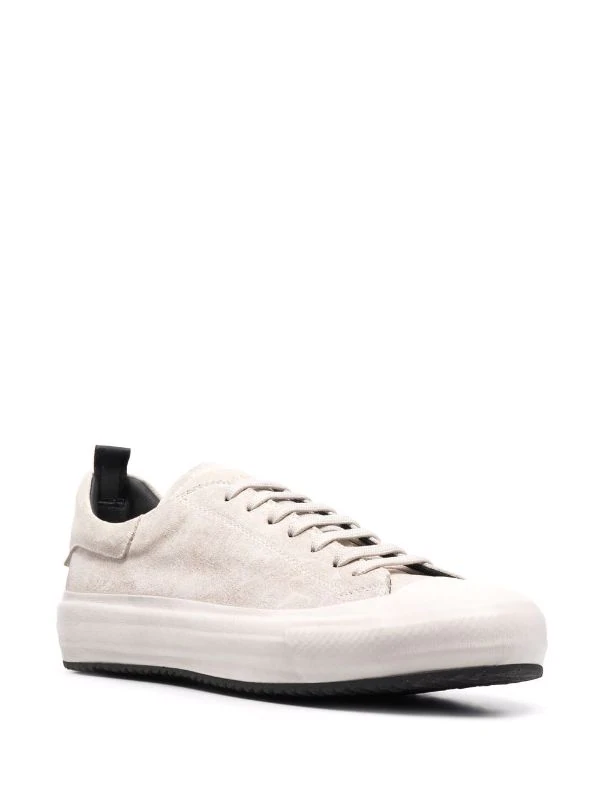 Languette à logo brodé, bout rond, fermeture à lacer sur le devant, semelle plate.
