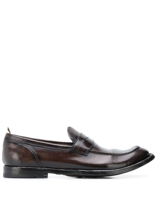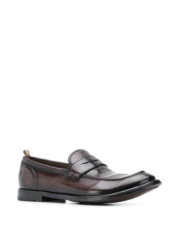 Derbies classiques en cuirs Officine Creative avec bout rond, design sans lacets, languette arrière, petit talon et semelle intérieure à logo. Couleur : marron.