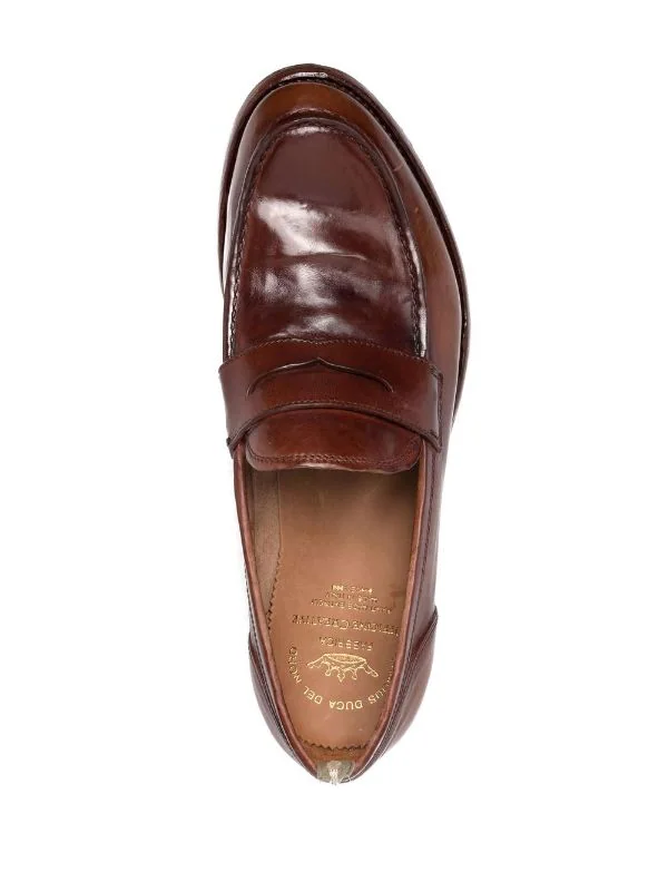 Bout rond, entaille penny, semelle intérieure à logo, languette d’enfilage au talon, semelle plate en cuir.