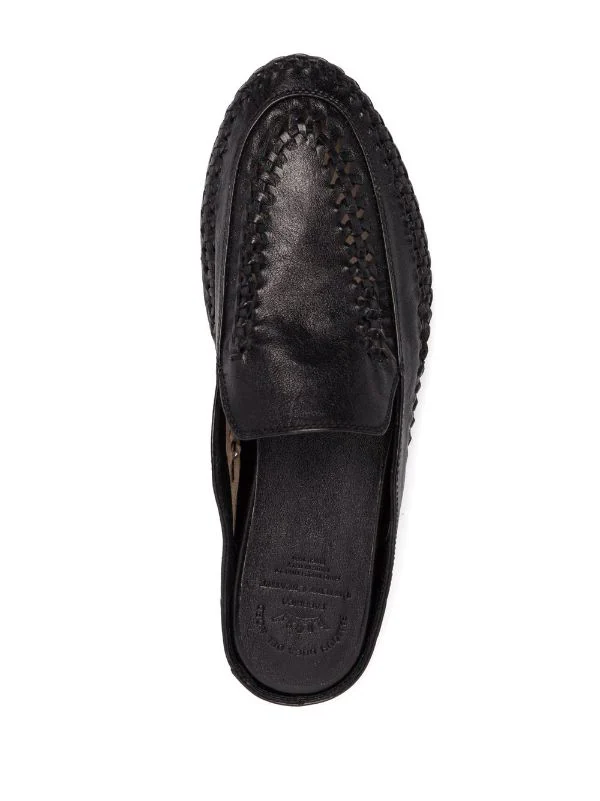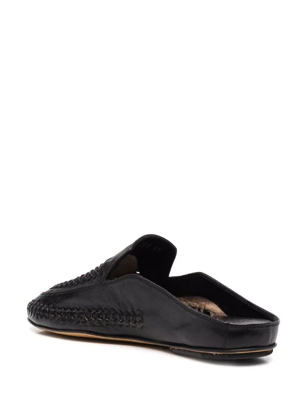 Finitions tressées, bout en amande, design à enfiler, semelle plate. Couleur : noir. Matière : cuir.