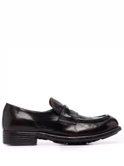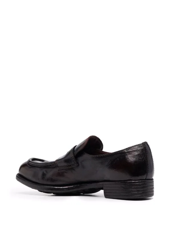 Fini poli, bout rond, design à enfiler, semelle en caoutchouc. Couleur : noir. Matière : cuir.