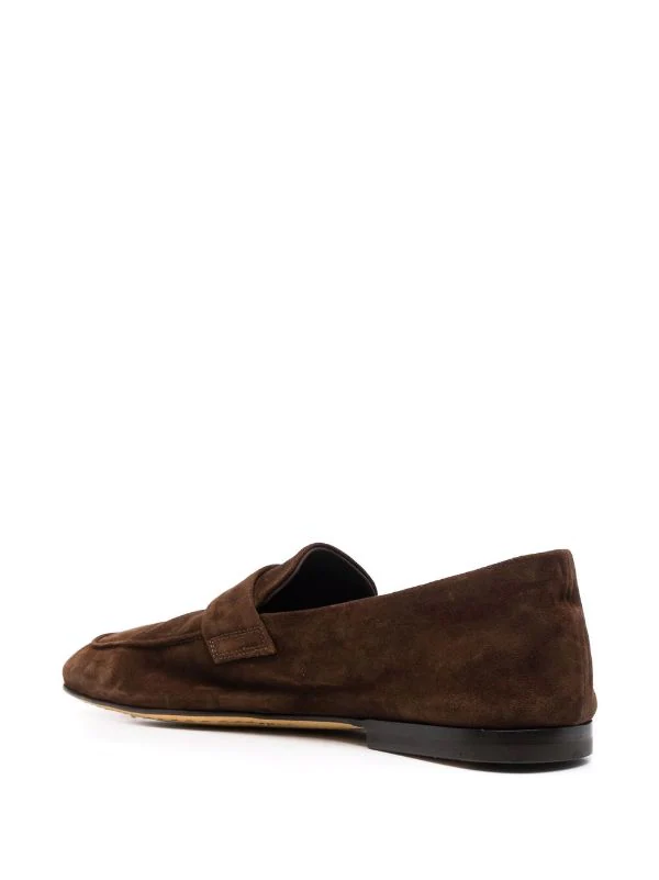 Bout rond, petit talon épais, semelle intérieure à logo, design à enfiler. Matière : cuir.