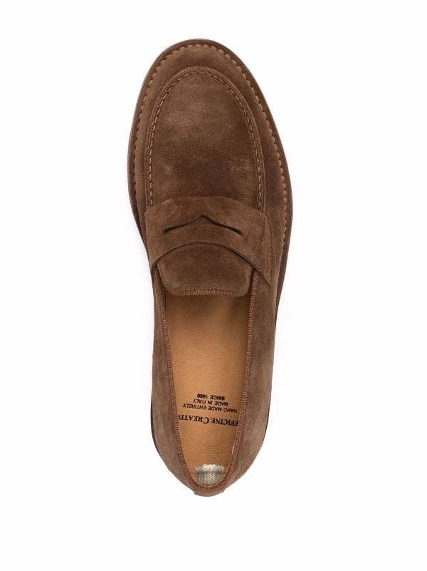 Bout rond, entaille penny, languette d’enfilage au talon, semelle intérieure à logo, semelle plate en caoutchouc. Couleur : marron.