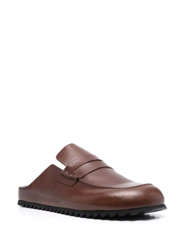 Semelle plate en caoutchouc, design à enfiler, bout rond. Couleur : marron. Matière : cuir cordovan.