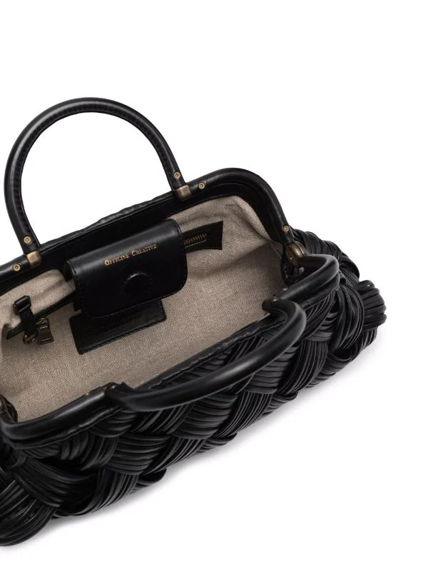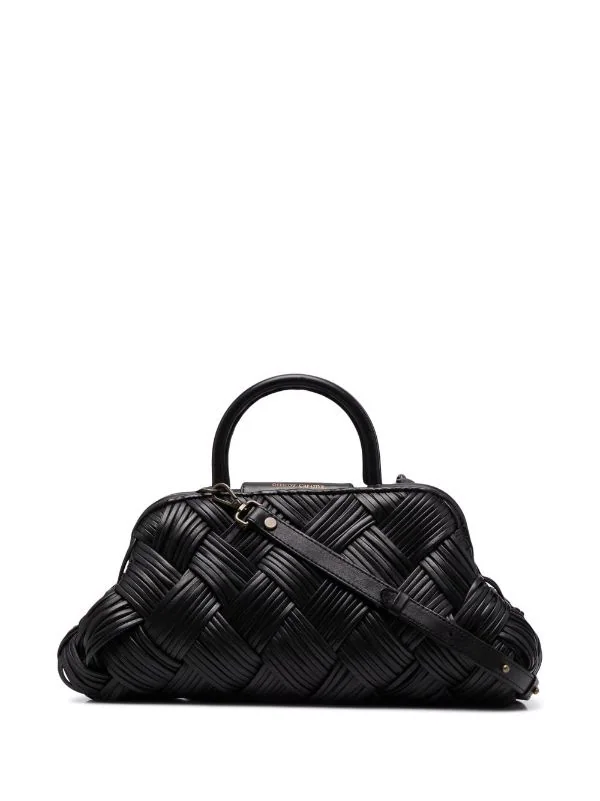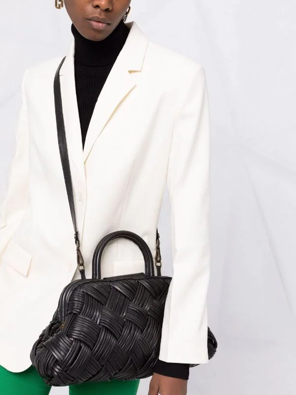 Bride porté épaule détachable et ajustable, anses arrondies, fini mat, design tissé, rabat sur le dessus à fermeture magnétique, compartiment principal, poche intérieure zippée. Couleur : noir. Matière : cuir.