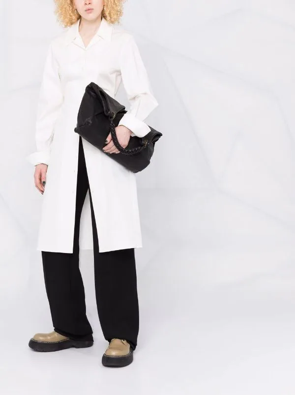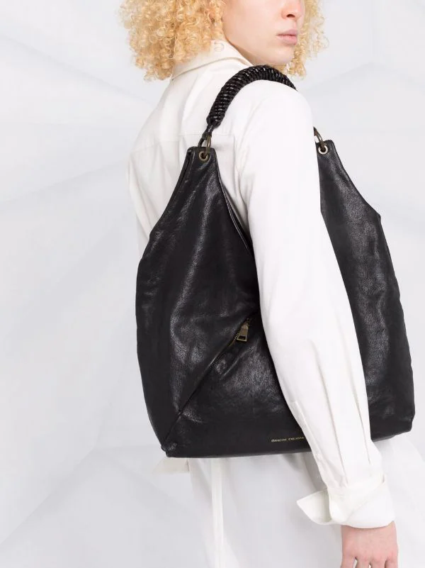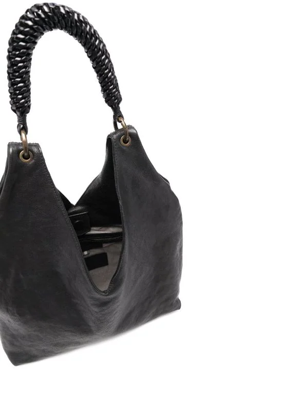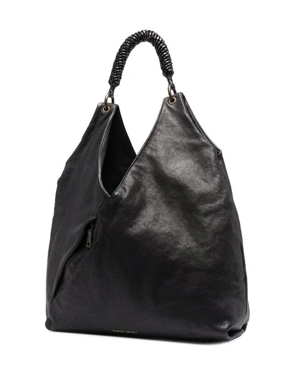 Fermeture magnétique, anse classique, compartiment principal, poches intérieures zippées. Couleur : noir. Matière : cuir de veau.