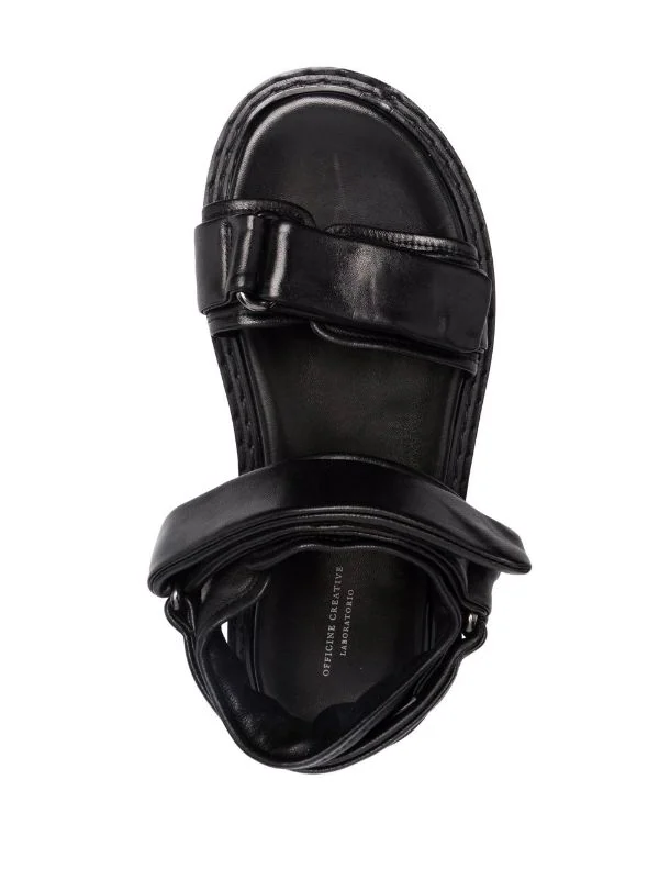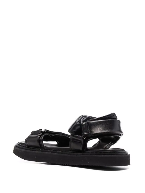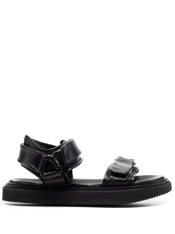 Fermeture scratch sur le devant, bout ouvert, semelle plate. Couleur : noir.
