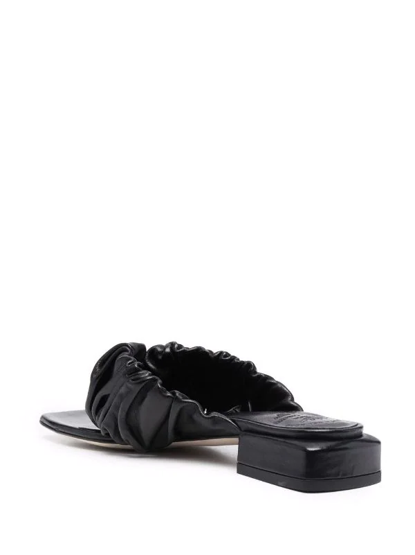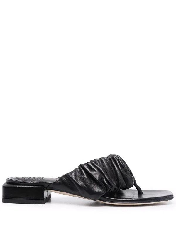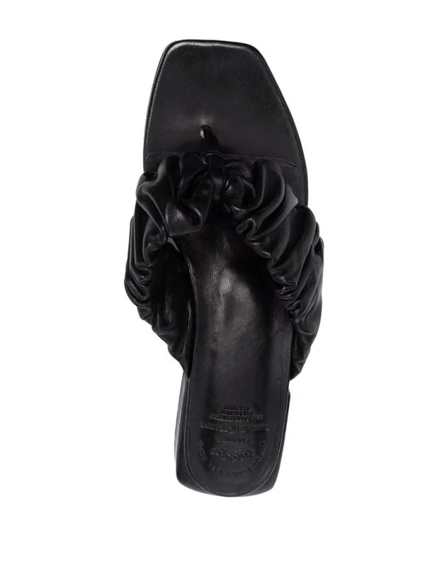 Doublure en cuir, bout ouvert, entre-doigts, semelle intérieure à logo, petit talon, semelle en caoutchouc.
