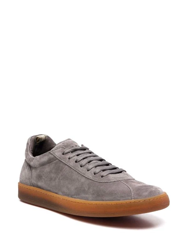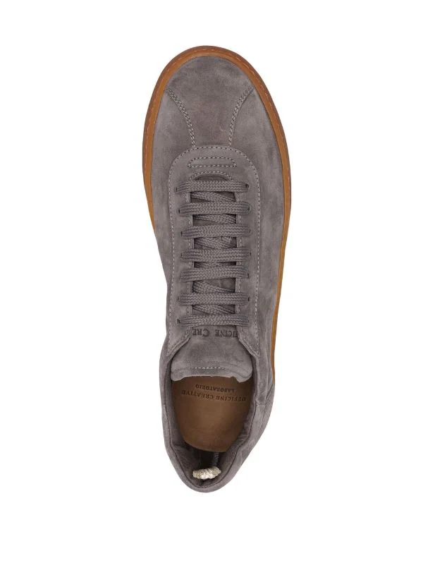 Languette à logo embossé, bout rond, fermeture à lacer sur le devant, semelle intérieure à logo, semelle épaisse en caoutchouc. Couleur : gris. Matière : daim.