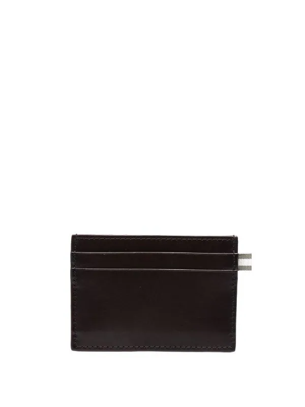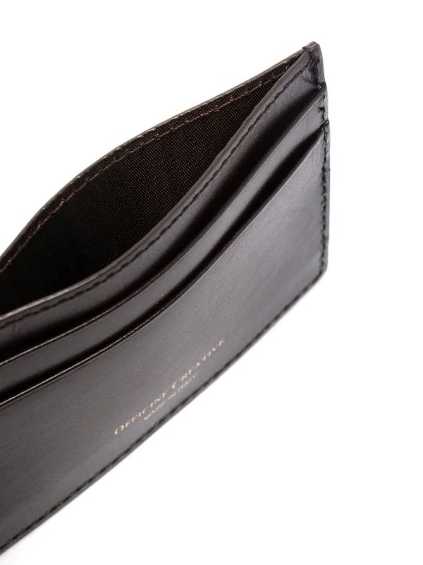 Logo embossé sur le devant, détail de rayure latérale, fentes pour carte. Couleur : marron. Matière : cuir.