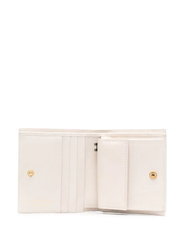 Design tissé, rabat sur le dessus à boutons pression, languette signature en gros-grain, poche ticket, compartiments intérieurs pour carte, compartiment à billets intérieur.