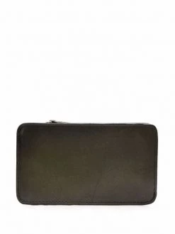 Fentes pour cartes à l’arrière, logo imprimé à l’arrière, compartiment zippé. Matière : cuir.