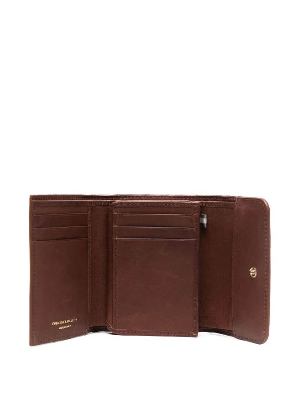 Rabat sur le dessus à boutons pression, compartiments intérieurs pour carte, compartiment à billets intérieur. Matière : cuir.