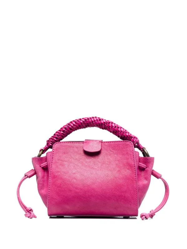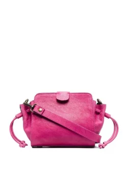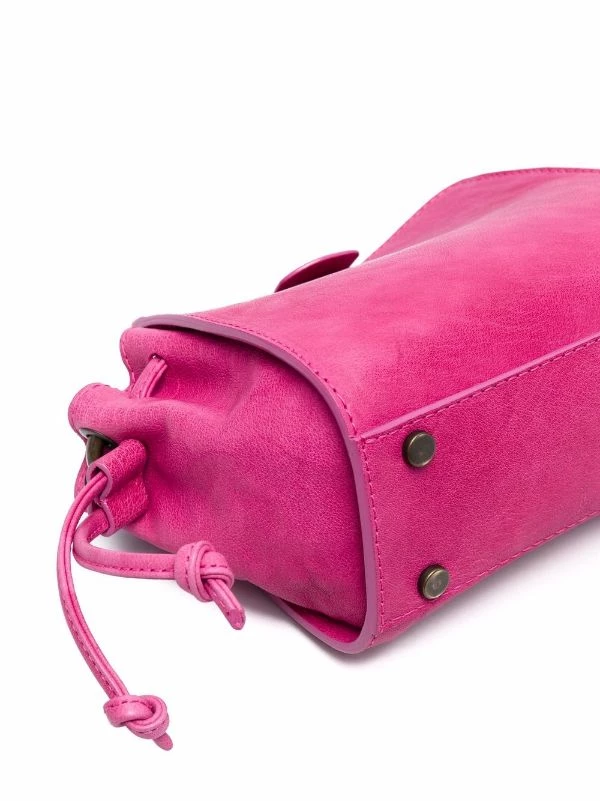 Bride porté épaule détachable et ajustable, lien de resserrage, fermeture magnétique, poches intérieures zippées. Couleur : rose. Matière : cuir.