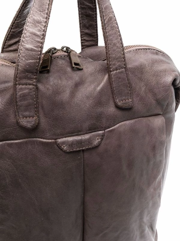 Anses sur le dessus, brides porté épaule ajustables, fermeture zippée sur le dessus, poche intérieure zippée. Couleur : marron. Matière : cuir de buffle.