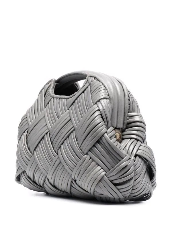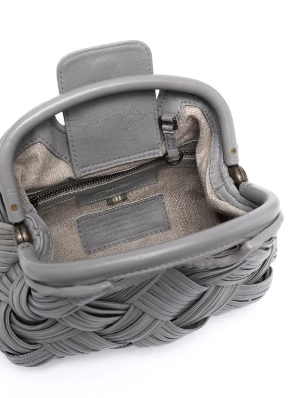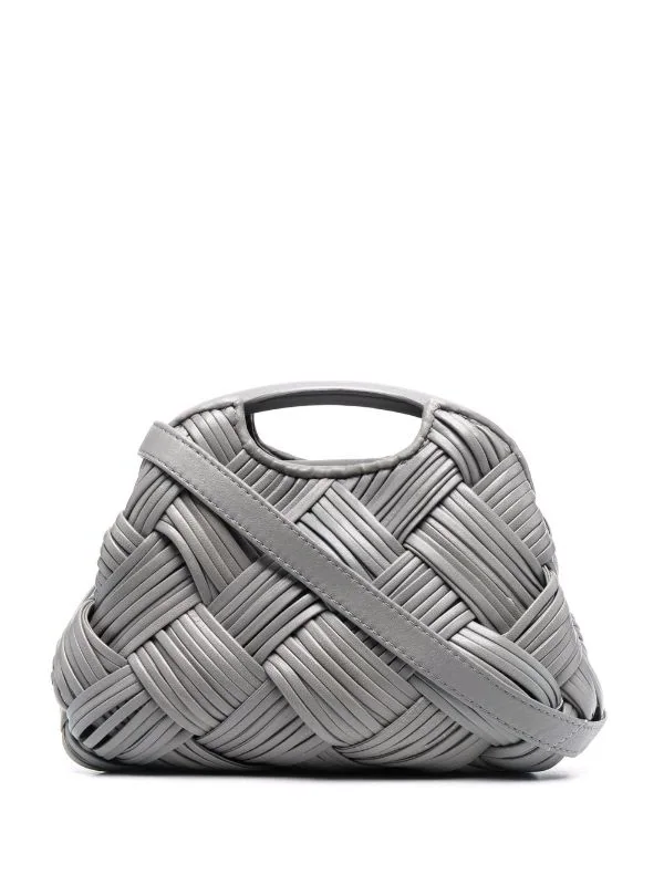 Design tissé, anses sur le dessus, fermeture magnétique, poches intérieures zippées. Couleur : gris. Matière : cuir.