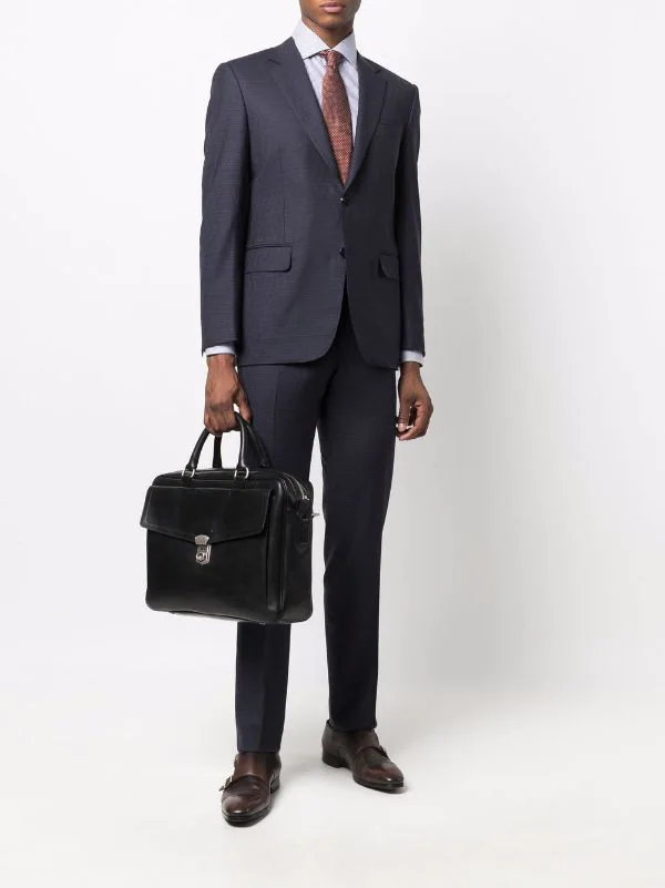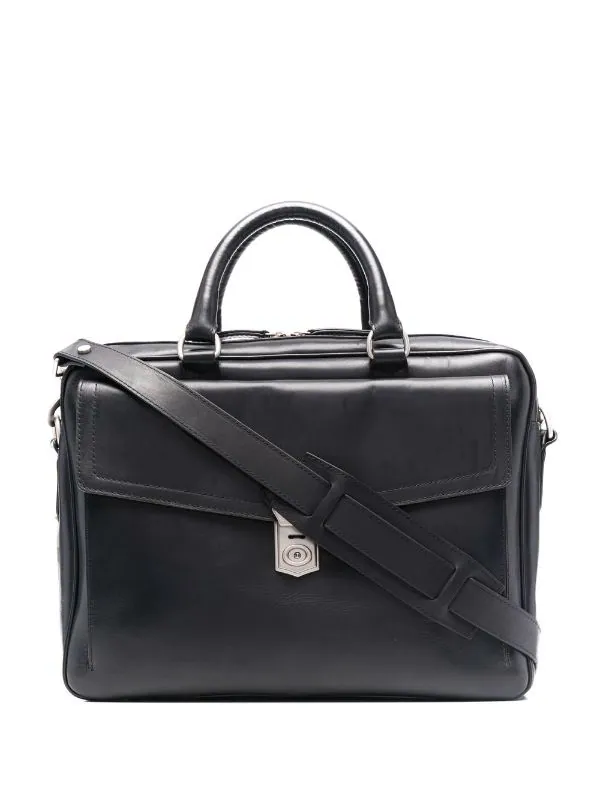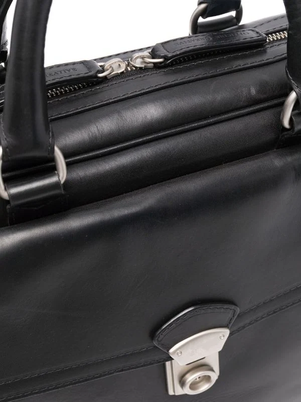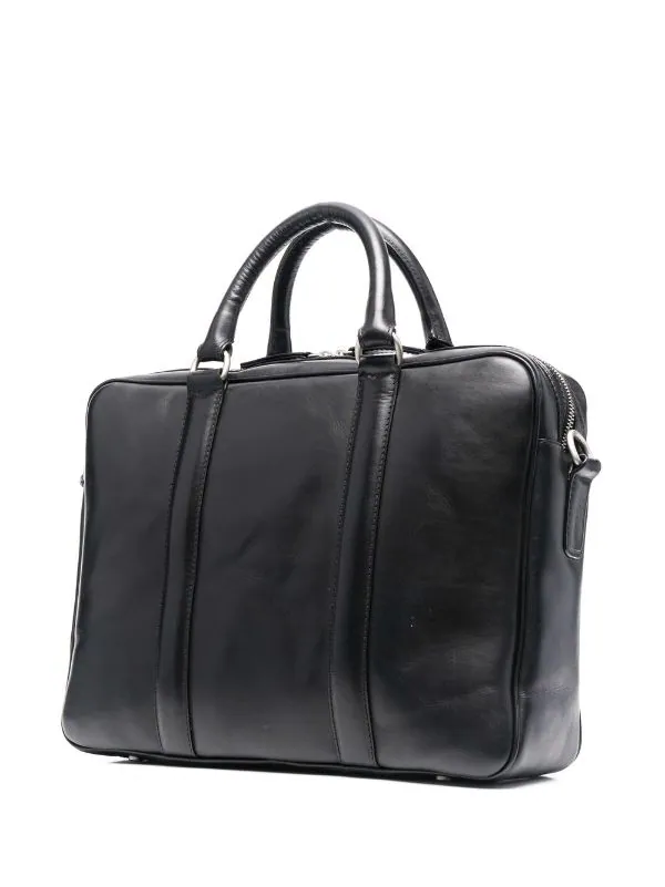 Anses sur le dessus, bride porté épaule détachable et ajustable, fermeture zippée sur le dessus, poche intérieure zippée, poche devant à rabat. Couleur : noir. Matière : cuir de veau.