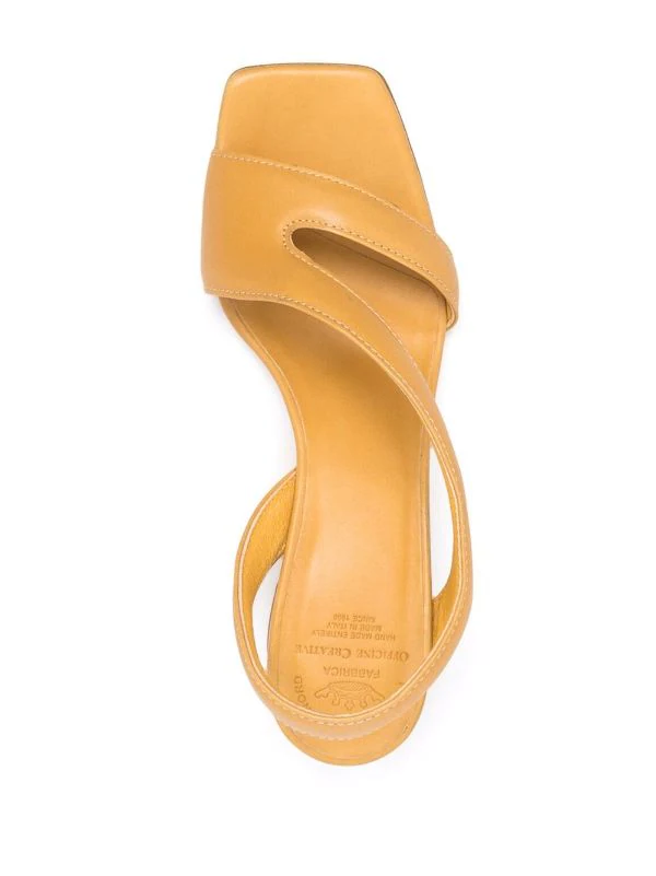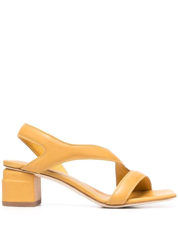 Bride arrière, bout ouvert, petit talon épais. Matière : cuir.